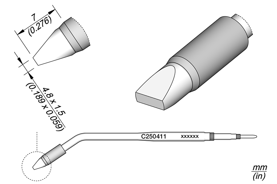 Размеры рабочей части, мм 1.5 × 4.8 × 7 мм