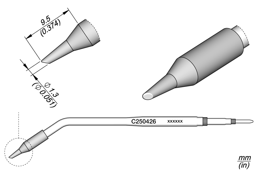 Размеры рабочей части, мм ⌀ 1.3 × 9,5 мм