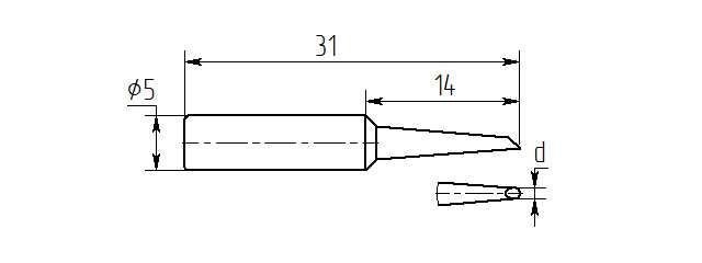 Паяльное жало износостойкое односторонний срез серии MG с посадочным диаметром 5 мм.