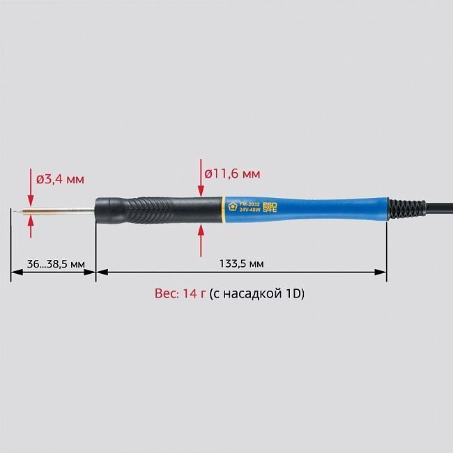 | Сопротивление между заземлением и наконечником | <2 Ом |