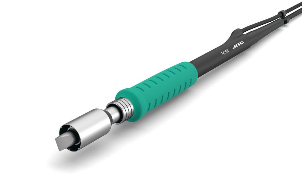 Паяльник T470-NA подает азот в процессе пайки, что помогает предотвратить окисление паяльного соединения. Поток азота создается генератором GN-A или централизованной системой, к которой подключено рабочее место специалиста. Рукоятка имеет теплоизолирующий манжет. Небольшое расстояние между рукояткой паяльника и наконечником обеспечивают высокую точность и комфорт работы.
