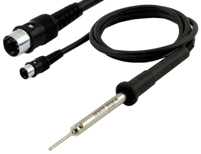 Паяльник с датчиком температуры для паяльных станций Магистр Ц20 50Вт, Ц20МП 50Вт, Ц20-А2 мини 50Вт. Совместимы паяльные жала серии М20 с посадочным диаметром 5 мм.