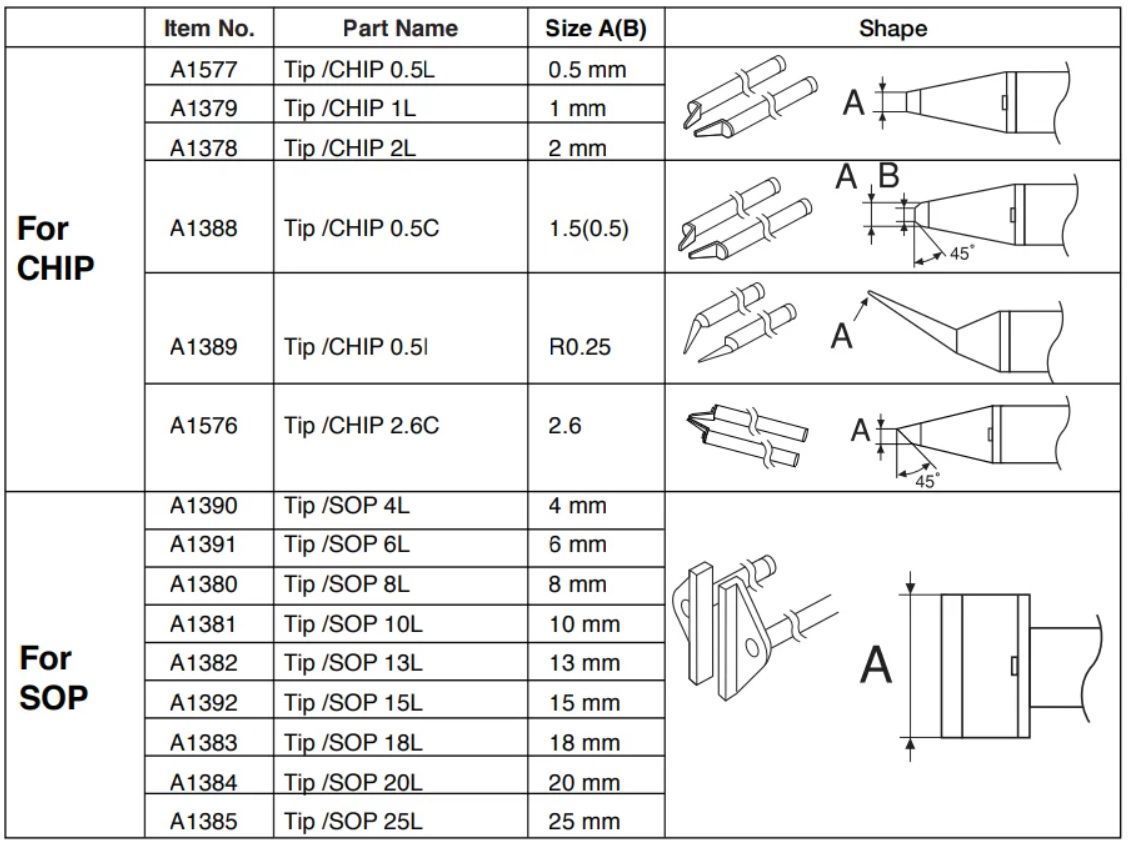 Паяльные наконечники серии Hakko 950/ FX-8804 для термопинцета FX-8804.