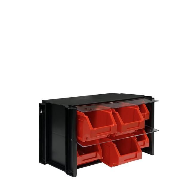 Они могут подвешиваться на стену и устанавливаться друг на друга, обеспечивая отличную организацию хранения. В комплект входит 6 выдвижных лотка с возможностью установки перегородок.