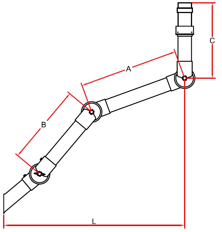 Alsident производит широкий спектр моделей System 75 с различными длинами секций и рабочими расстояниями от точки крепления до источника загрязнения до 1990 мм. Дымоприемники System 75 спроектированы для быстрого и простого монтажа в отверстие в столешнице, на струбцину, крепящуюся на кромку стола или к настенному креплению.