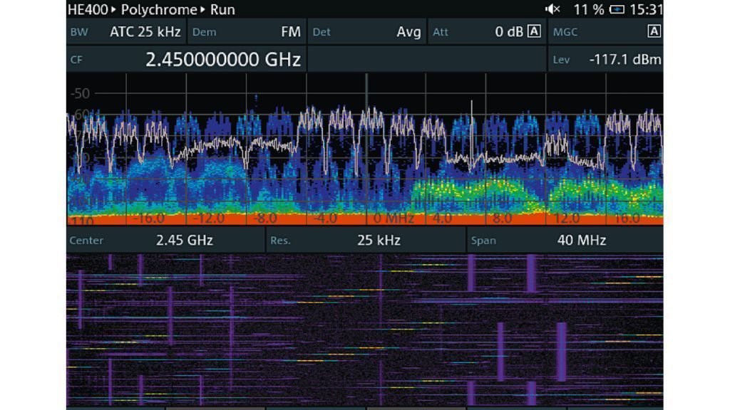Полихромный спектр. Отображение уровней сигналов в спектре с цветовым кодированием.
