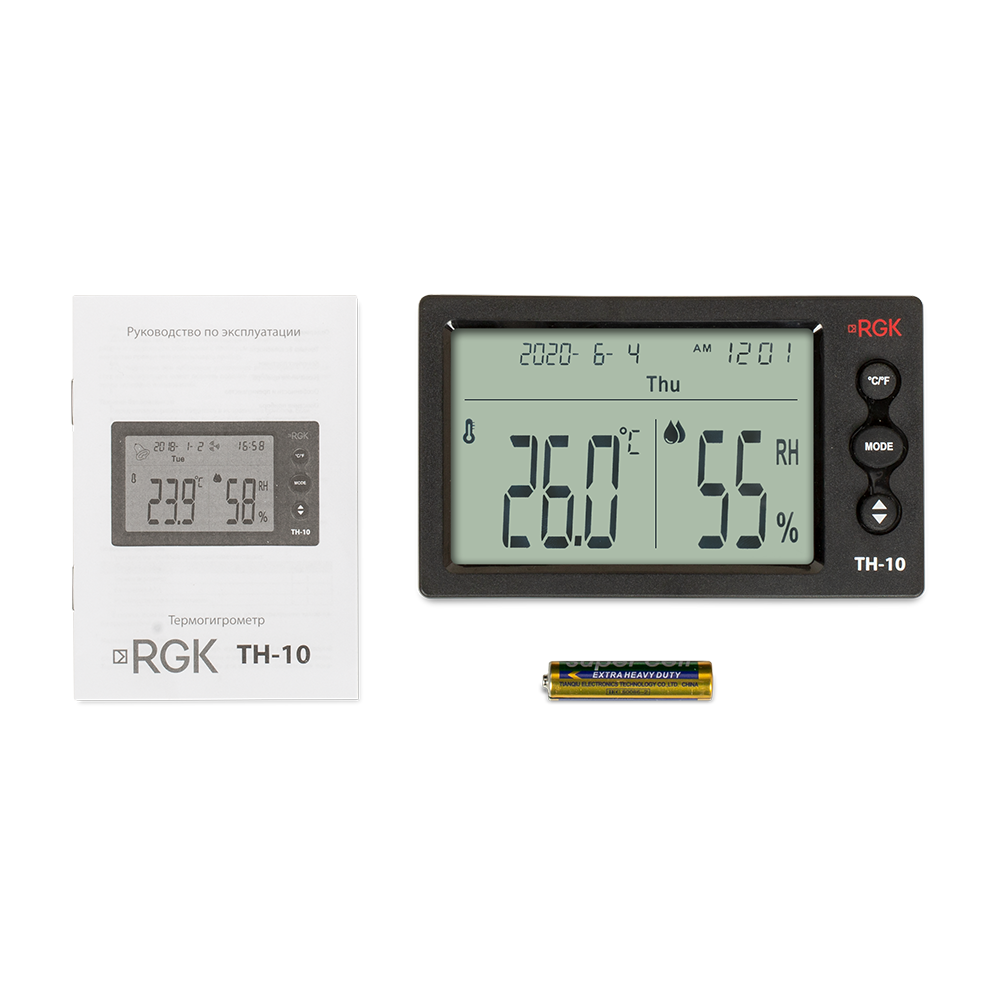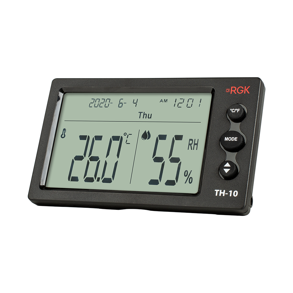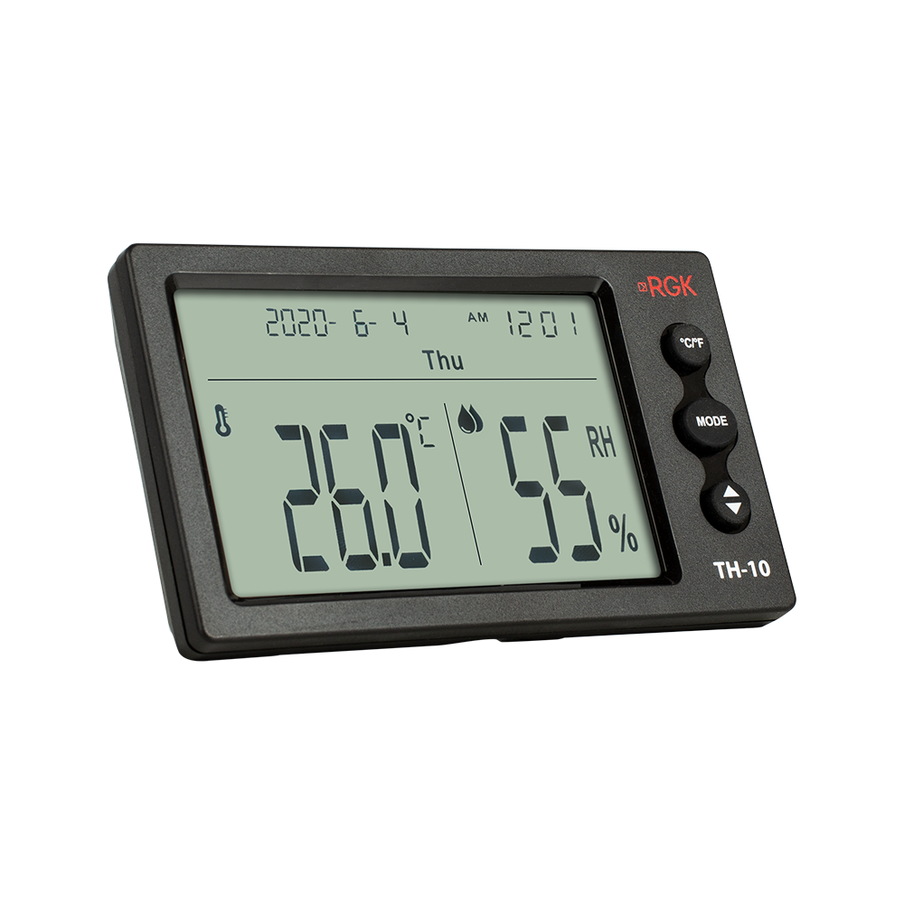 Электронный термогигрометр RGK TH-10 обновляет показания температуры и влажности раз в 10 с. Можно настроить прибор так, чтобы каждый час подавался звуковой сигнал, напоминающий о необходимости проверки климатических параметров. Отображение текущего времени и даты упрощает занесение данных в журнал и другую документацию.