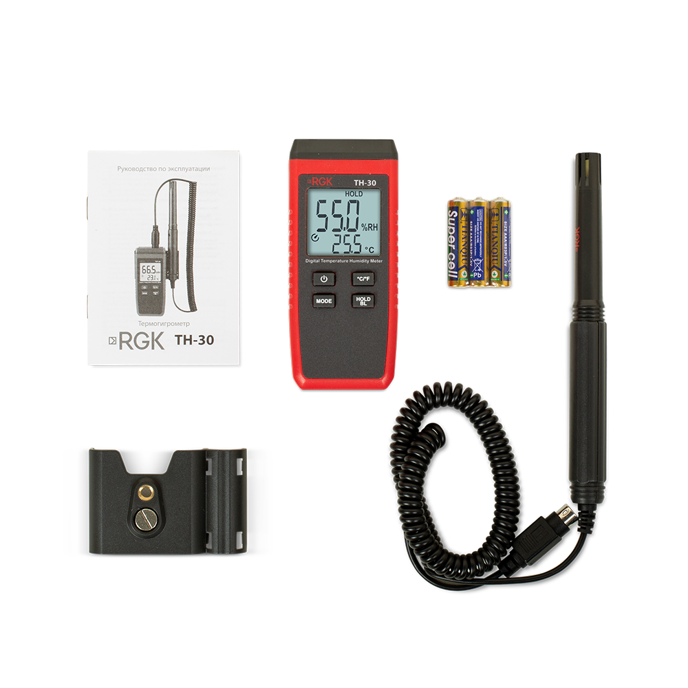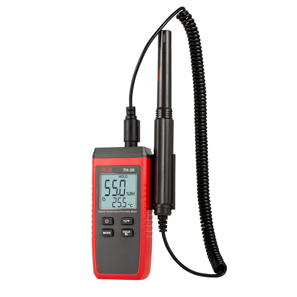 Цифровой термогигрометр RGK TH-30 - это надежный и точный прибор для измерения климатических параметров в помещении. Главное преимущество модели - выносной датчик на длинном, гибком проводе, с помощью которого удобно проводить локальные замеры в местах с ограниченным доступом, таких, как вентиляционные каналы, технологические отверстия в стенах или плотные штабели продукции.