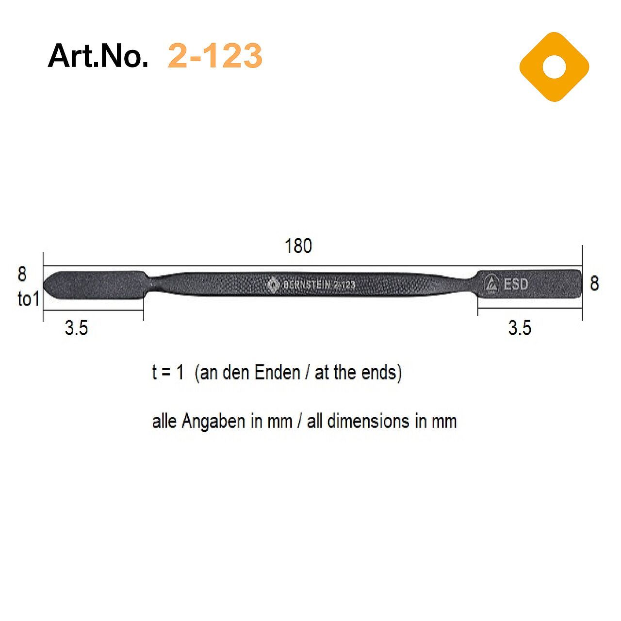 Bernstein B2-123 (SPUDGER) — это специализированный антистатический рычаг, предназначенный для бережной разборки смартфонов и работы с микроразъемами электронных устройств. Инструмент обеспечивает высокую точность при отключении чувствительных коннекторов и вскрытии корпусов в зонах, защищенных от электростатического разряда.