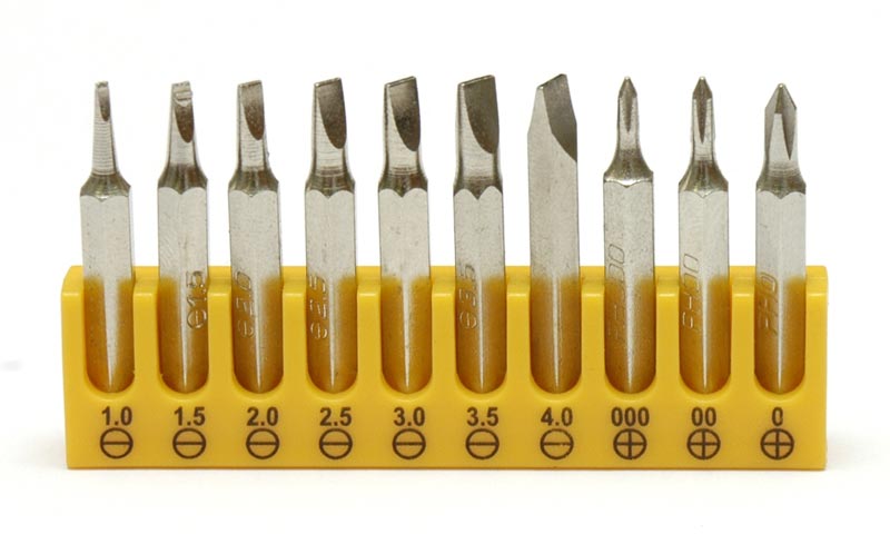 | Насадки "прямой шлиц" (SL) | 1.0, 1.5, 2.0, 2.5, 3.0, 3.5, 4.0 мм |