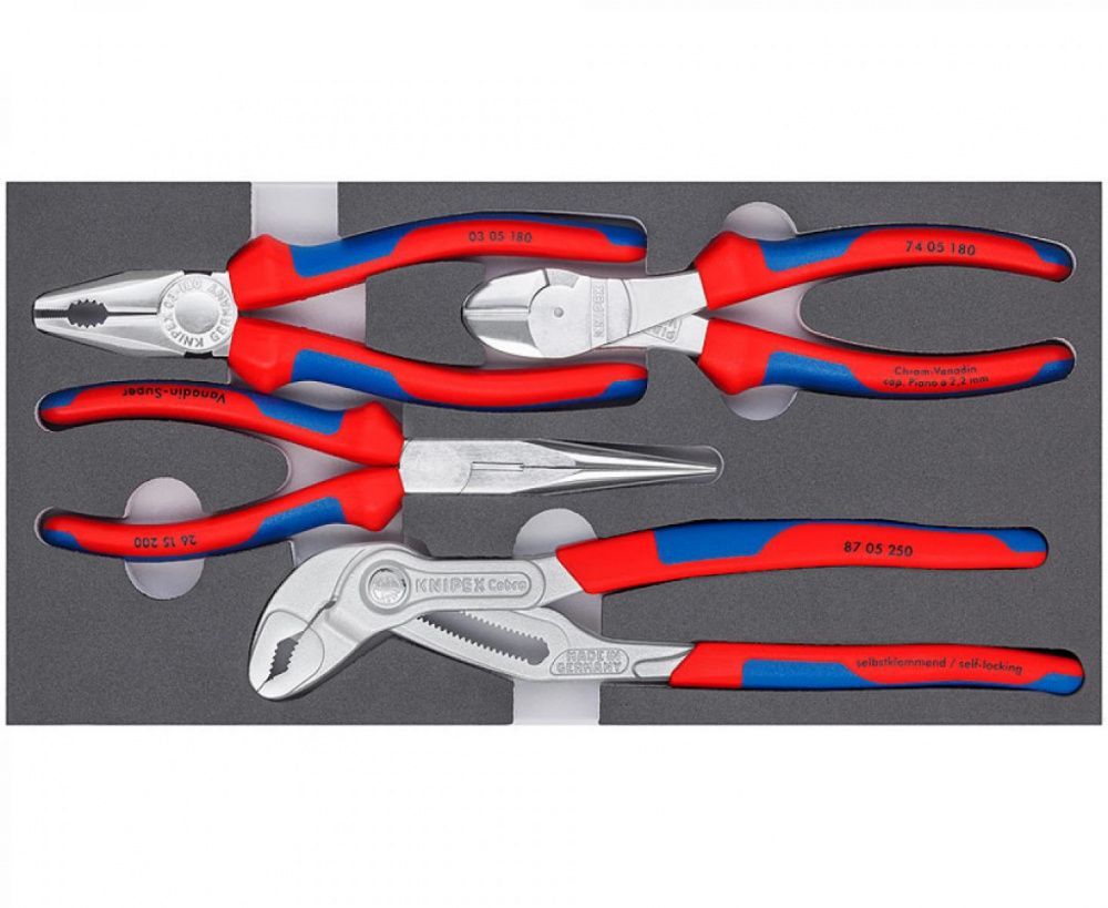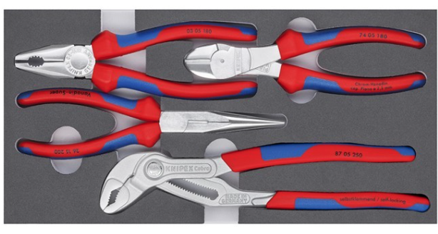 KNIPEX KN-002001V17 — это профессиональный набор ручного инструмента, включающий четыре ключевых инструмента для слесарных, электромонтажных и, благодаря наличию клещей Cobra, для сантехнических работ. Этот набор обеспечивает высокий уровень универсальности и надежности, необходимой в ежедневной работе.