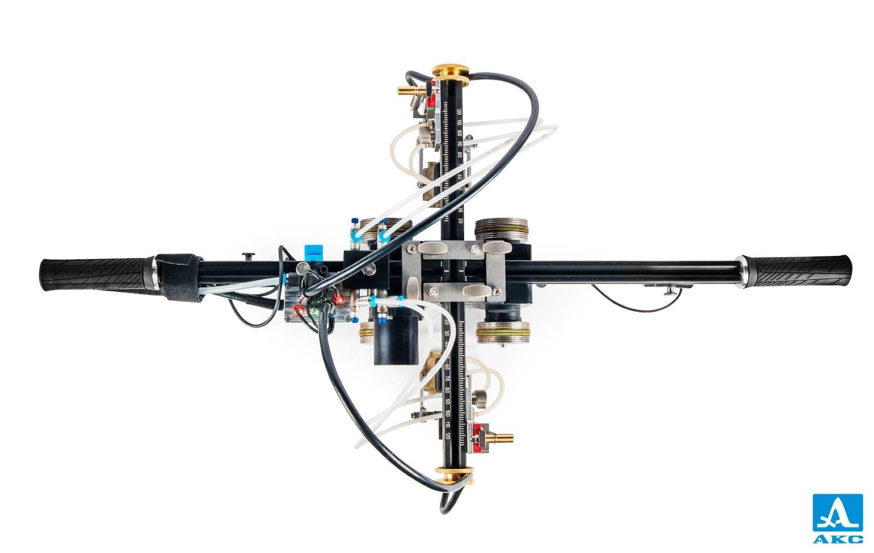 Моторизированный сканер MS152 ScaUT состоит из транспортной платформы (колесная база), двух подвесов антенных решеток, профиля для крепления подвесов АР, набора рамок для АР (автоматическая подача жидкости), набора для автоматической подачи жидкости, лазерных указателей, мультиплексора антенных решеток.