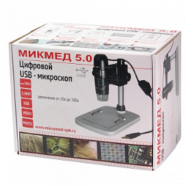 Цифровая камера микроскопа построена на цветным сенсоре с разрешением 5Мр. Питание камеры осуществляется непосредственно через USB порт. При записи фото поддерживается разрешение 2592х1944 (5Мр), 2048х1536 (3Мр), 1600х1200 (2Мр)