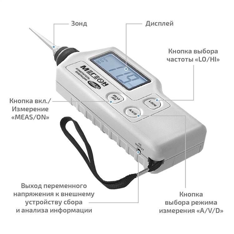 Портативный измеритель вибрации МЕГЕОН 09630 предназначен для анализа уровня колебаний различных объектов и конструкций. Прибор позволяет измерять три ключевых параметра вибрации: ускорение, скорость и перемещение. В основе работы лежит пьезоэлектрический эффект, возникающий в поляризованной керамике. Встроенный процессор обрабатывает данные и выводит результаты на дисплей с подсветкой. Благодаря сменным наконечникам, входящим в комплект, МЕГЕОН 09630 удобно использовать в разных условиях для контроля вибраций, создаваемых машинами и оборудованием.