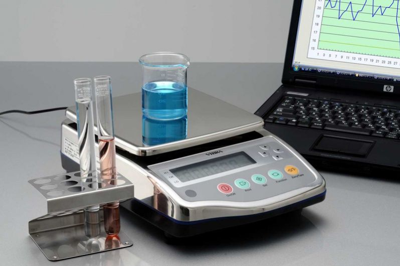 Влагозащищенные лабораторные весы ViBRA CJ-2200ER.