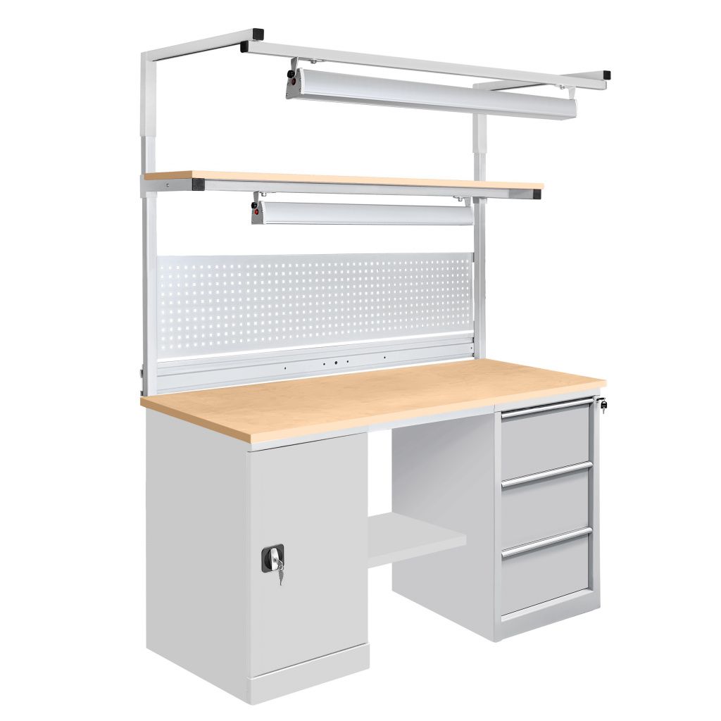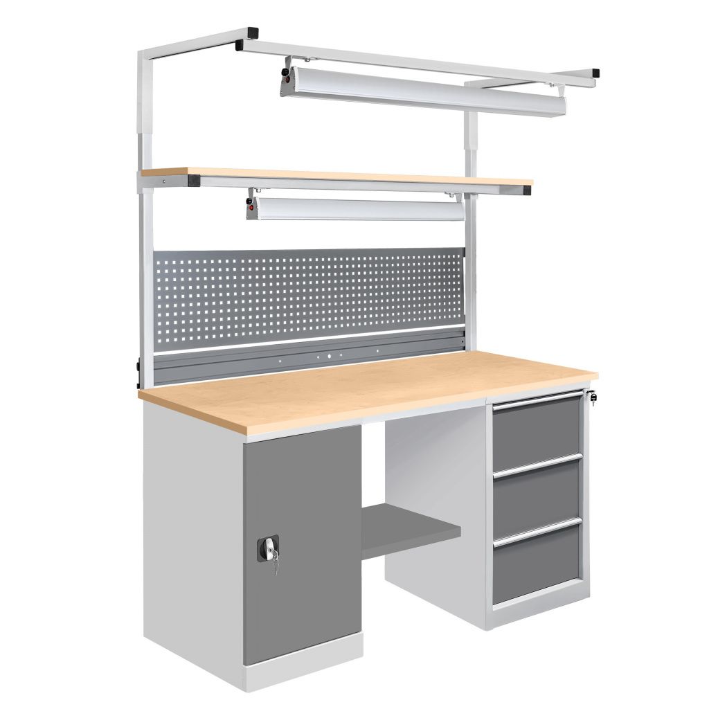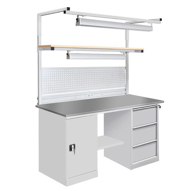 Внимание! Стоимость указана за базовый вариант верстака в общепромышленном исполнении. Остальные изображения носят информативный характер о возможных вариантах модульной сборки рабочего места. Дополнительное оборудование и комплектующие подбираются по размерам столешницы и приобретаются отдельно.