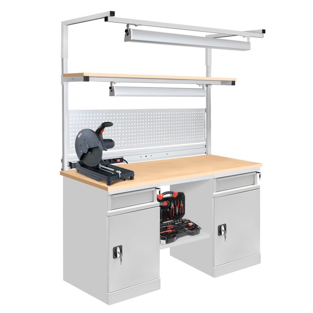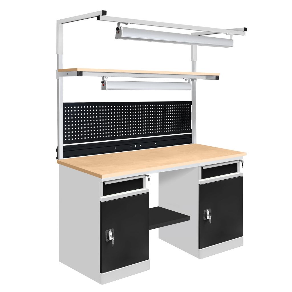 Внимание! Стоимость указана за базовый вариант верстака в общепромышленном исполнении. Остальные изображения носят информативный характер о возможных вариантах модульной сборки рабочего места. Дополнительное оборудование и комплектующие подбираются по размерам столешницы и приобретаются отдельно.