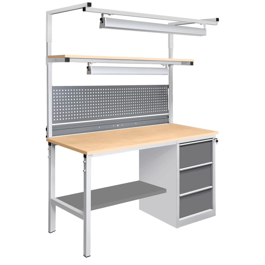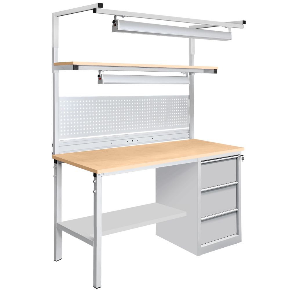 Внимание! Стоимость указана за базовый вариант верстака в общепромышленном исполнении. Остальные изображения носят информативный характер о возможных вариантах модульной сборки рабочего места. Дополнительное оборудование и комплектующие подбираются по размерам столешницы и приобретаются отдельно. Прозрачные полоски для ручек тумбы, обеспечивающие фиксацию маркировки (обозначения) ящика, поставляются в комплекте.