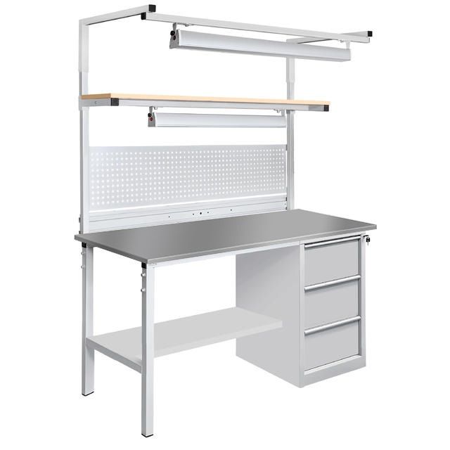 Верстак слесарный — это стол для слесарных и столярных работ, за которым с помощью инструмента производится ручная обработка изделий из дерева, металла и других материалов. Верстак имеет устойчивую конструкцию; одной из опор стола выступает тумба металлическая ТС-3, которая может быть установлена с левой и с правой стороны. Конструкция слесарного верстака с применением дополнительного оборудования позволяет разместить необходимый инструмент, оснастку, материалы и документацию для организации рабочего процесса.